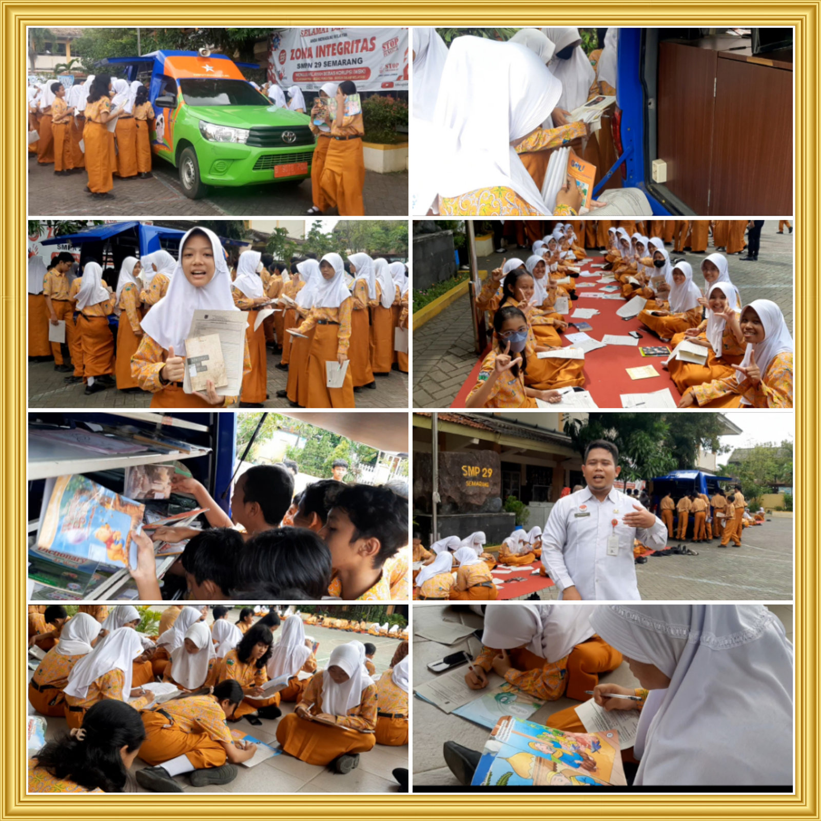 Kegiatan Literasi di SMP Negeri 29 Semarang bekerja sama dengan Perpustakaan Keliling Kota Semarang, Kegiatan ini bertujuan untuk melatih kemampuan dan keterampilan Siswa Siswi kelas 7 dalam membaca, menulis dan memahami isi kandungan buku yang dibaca