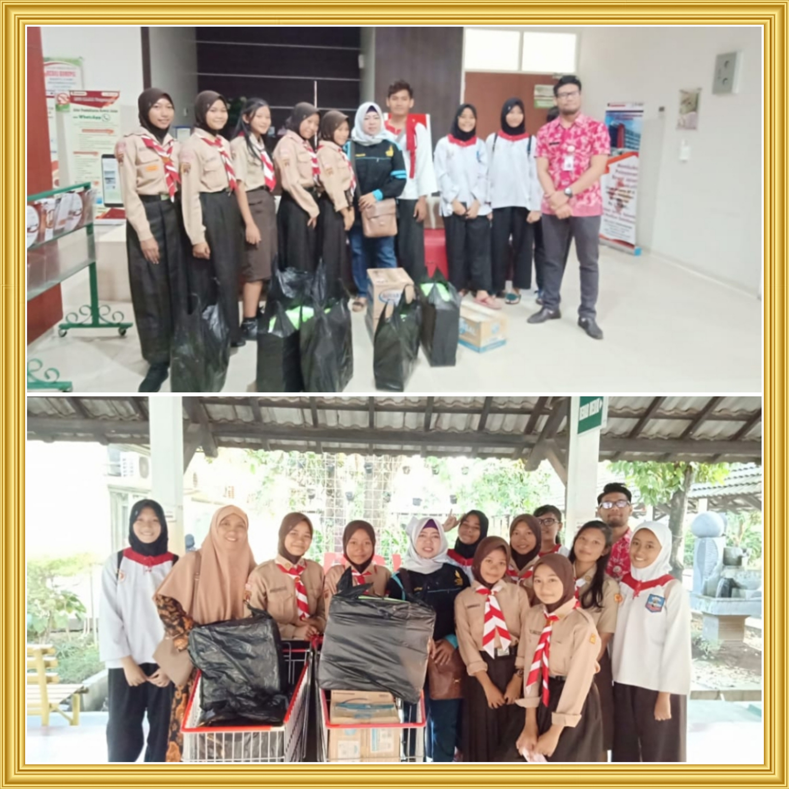 Pramuka SMP Negeri 29 Semarang didampingi oleh pembinan mengadakan Bantuan Sosial (BANSOS) berupa pembagian takjil di Rumah Sakit Wongso Negoro (RSWN)