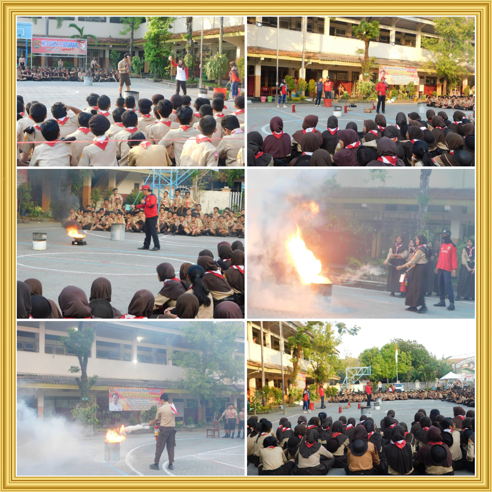 Pramuka SMP Negeri 29 Semarang brkerjasama dengan DAMKAR (Pemadam Kebakaran) anggota pramuka diberikan edukasi penting tata cara menanggulangi apabila terjadinya kebakaran